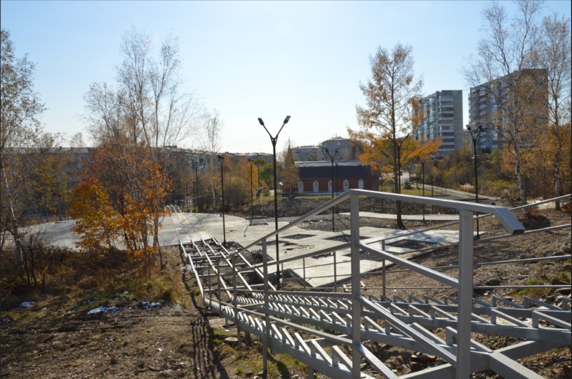В частности, на объекте «Сквер Звёздный» в настоящее время ведётся подготовка основания под амфитеатр. В рамках этого комплекса работ производится отсыпка будущей площадки скальным грунтом, после чего будут проводиться бетонные работы. На объекте задействована необходимая техника.